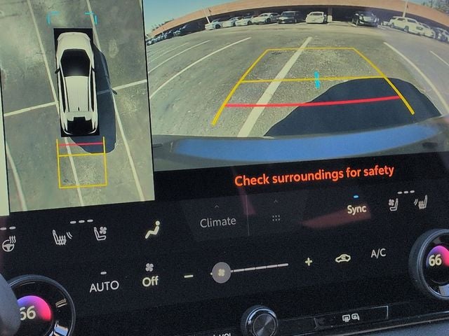 41. The Panoramic View Monitor does not provide a comprehensive view of the area surrounding your vehicle. Look around to confirm clearance. See Owner’s Manual for limitations.