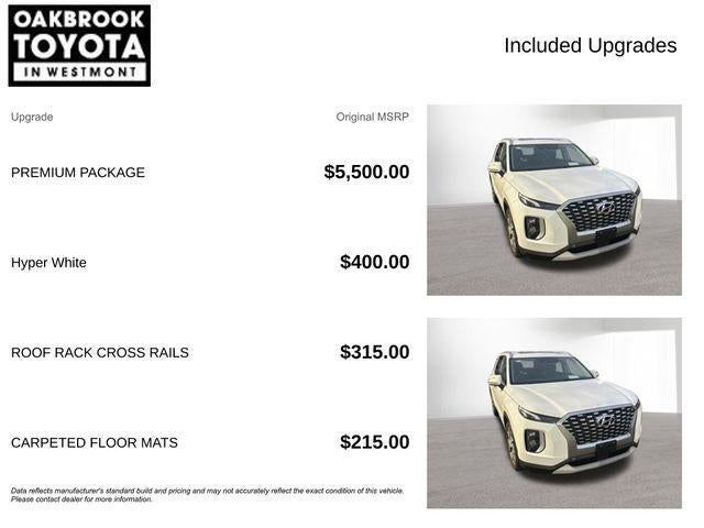 Recent Arrival! CARFAX One-Owner. 2021 4D Sport Utility Hyundai Palisade SEL Hyper White AWD V6 8-Speed Automatic with SHIFTRONIC 115-Volt AC Power Outlet, 3rd Row USB Outlets, 4-Wheel Disc Brakes, 7"" High-Resolution Cluster Display, 8-Way Power Passenger Seat, ABS brakes, Acoustic Front Side Glass, Auto Leveling Rear Suspension, Brake assist, Convenience Package P2, Driver's Seat Integrated Memory System, Four wheel independent suspension, Front Parking Sensors, Garage door transmitter: HomeLink, Hands-Free Smart Liftgate, Heated 2nd Row Seats, Heated front seats, Heated Steering Wheel, Highway Drive Assist I, Leather Seat Trim, LED Taillights, Power 3rd Row Seating, Power moonroof, Premium Dashboard & Door Armrests, Premium Package, Premium Package P3, Radio: AM/FM/MP3 Premium Audio System, Rear Side Window Sunshades, Speed-sensing steering, Traction control, Ultrasonic Rear Occupant Alert, Wheels: 20"" x 7.5J Split 5-Spoke Machined Alloy, Wireless Phone Charger. Odometer is 18353 miles below market average! 03/07/2026