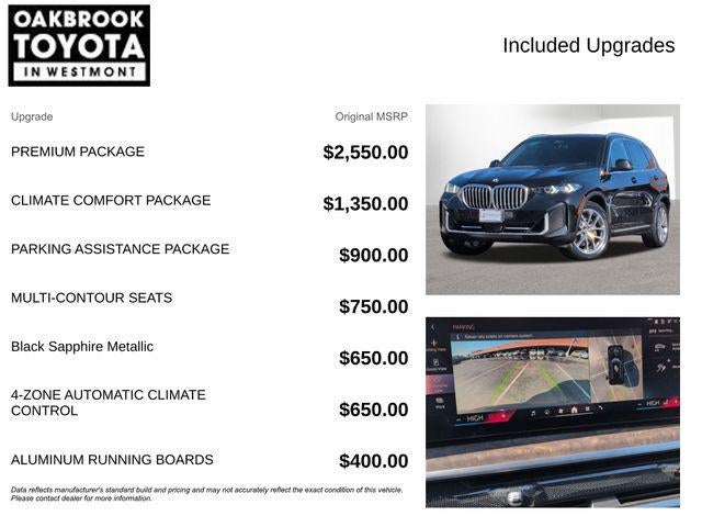 Recent Arrival! Clean CARFAX. CARFAX One-Owner. 2024 4D Sport Utility BMW X5 xDrive40i Black Sapphire Metallic AWD 3.0L I6 DOHC 24V 8-Speed Automatic Sport BLUE TOOTH, BACKUP CAMERA, 4NEW TIRES, 10 Speakers, 4-Zone Automatic Climate Control, Active Park Distance Control, Adaptive Full LED Lights w/Cornering Lights, Apple CarPlay & Android Auto Compatibility, Apple CarPlay Compatibility, Auto High-beam Headlights, Auto tilt-away steering wheel, Auto-dimming Rear-View mirror, Brake assist, Climate Comfort Package, Connected Package Pro, Delay-off headlights, Electronic Stability Control, Front & Rear Heated Seats, Front Ventilated Seats, Fully automatic headlights, Gesture Control, harman/kardon Surround Sound System, Head restraints memory, Heated door mirrors, Heated Front Seats, Armrests & Steering Wheel, Live Cockpit Pro, Memory seat, Navigation System (subscription for update), Panic alarm, Panoramic Sky Lounge LED Roof, Parking Assistance Package, Parking Assistant Professional, Power adjustable front head restraints, Premium Package, Rain sensing wipers, Remote Engine Start, Surround View w/3D View, Turn signal indicator mirrors, Wheels: 20"" x 9"" V-Spoke (Style 738), Wireless Device Charging.23/27 City/Highway MPG 03/02/2026