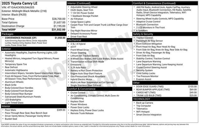 2025 Toyota CAMRY LE